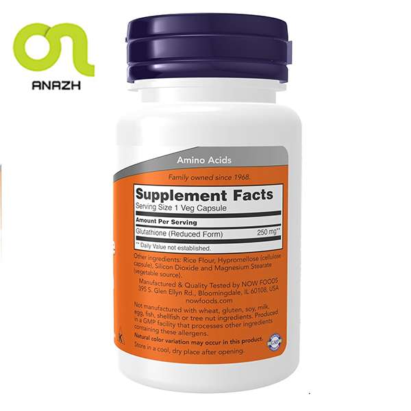 گلوتاتیون روشن کننده پوست ۲۵۰ میلی گرم NOW Gluthatione (60 عددی)-اناژ
